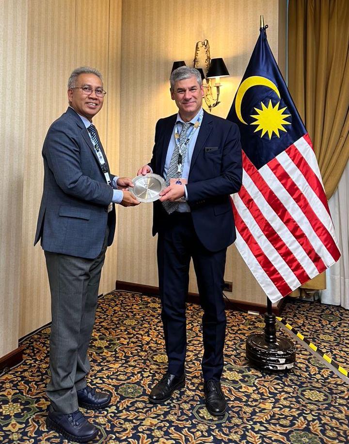 Lima, 14 December 2023 — The 50th anniversary of LACAC also provided an opportunity for ECAC President Alessio Quaranta (pictured on the right) and Executive Secretary Patricia Reverdy to meet with the Malaysian delegation, led by Captain MD Jani Nin Md Dom, Deputy Chief Executive Officer (regulatory) (pictured on the left), to discuss areas of mutual interest.